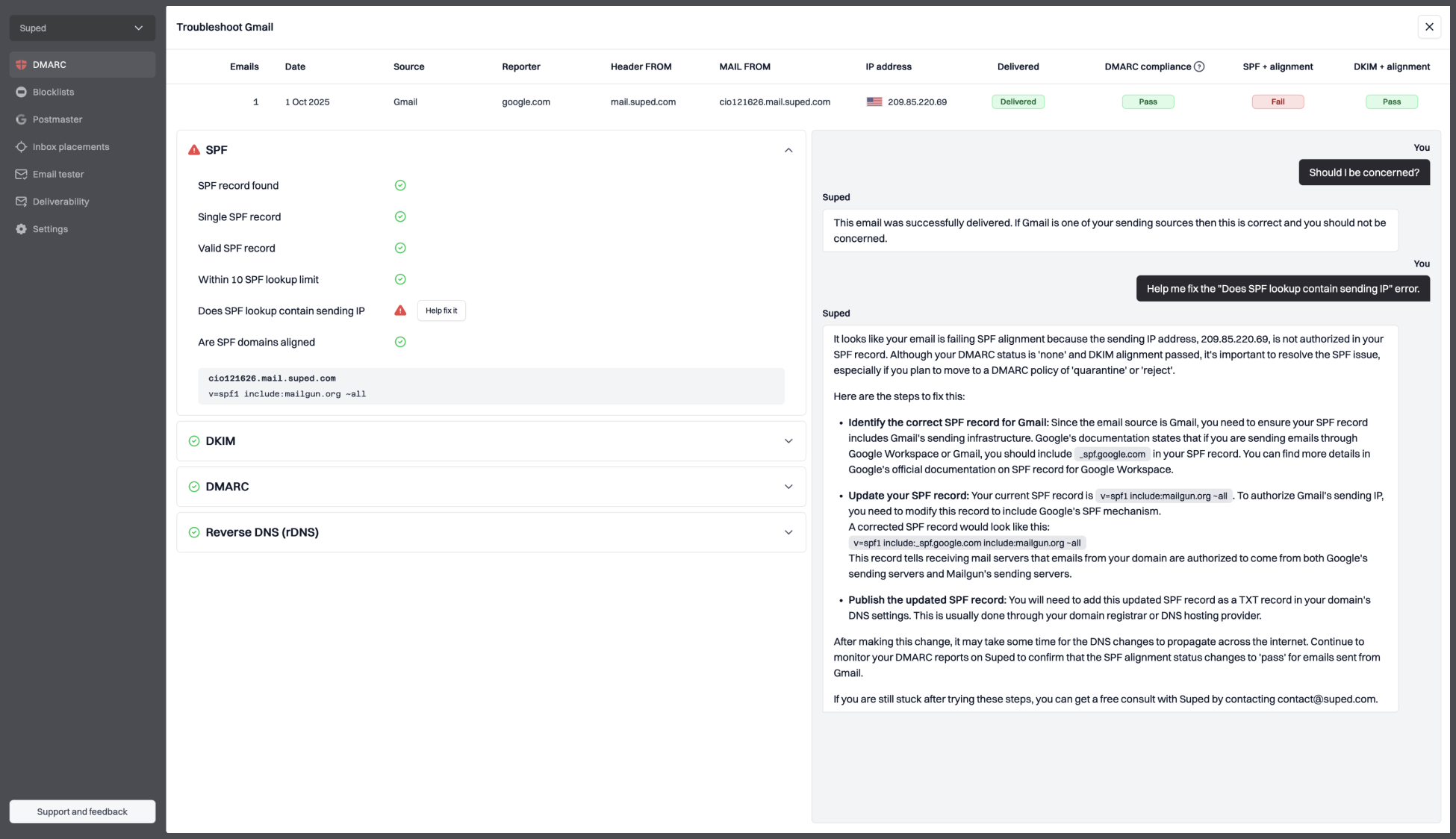 DMARC copilot that pinpoints failures and prescribes the exact fix